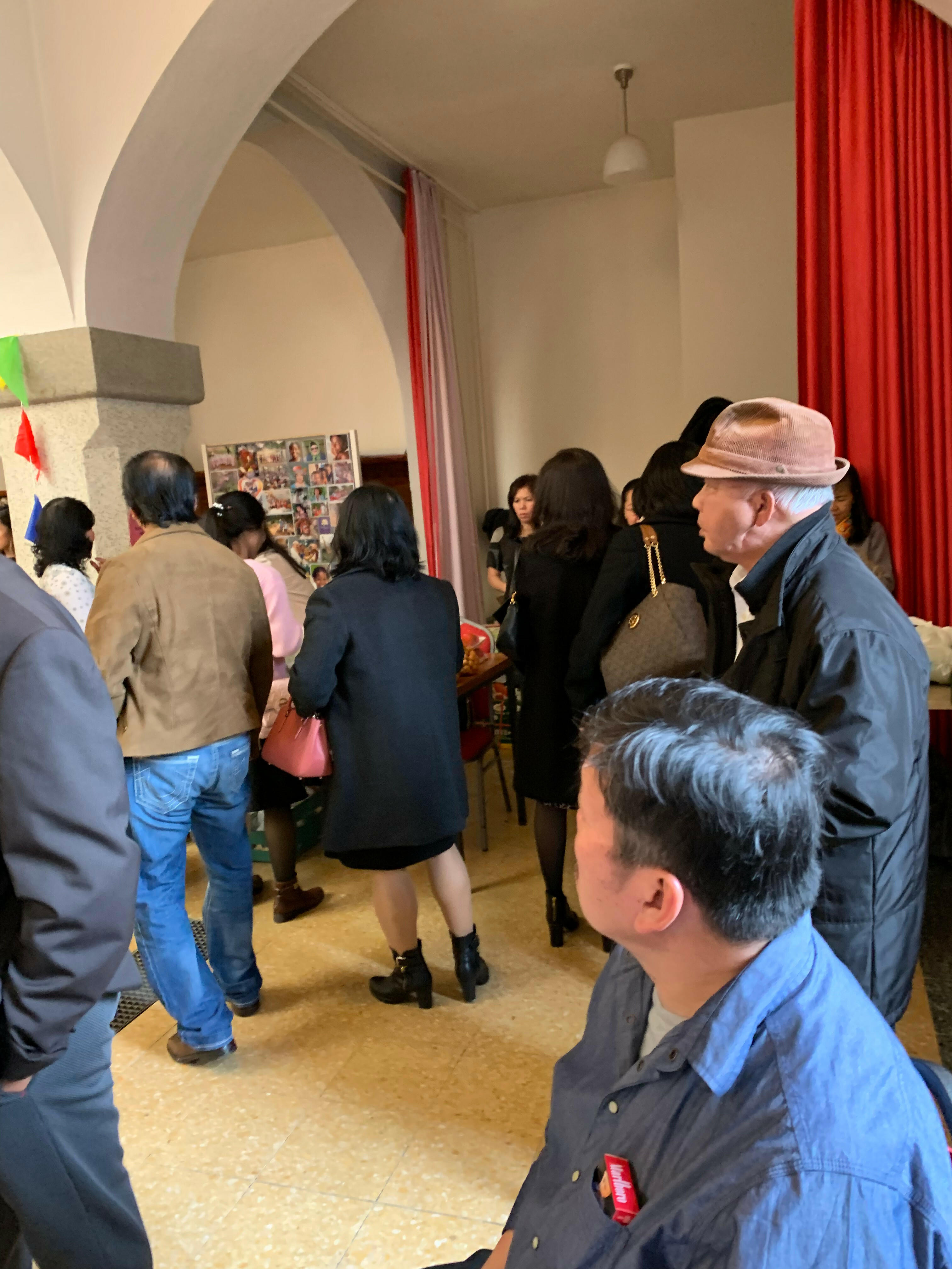 Gần tới giờ lễ người người tiến vào hội trường